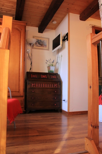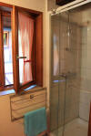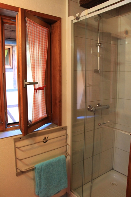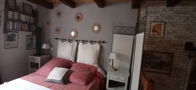 A l'étage, une salle d'eau avec douche, un lit double, une TV par câble avec lecteur DVD et USB. L'accès de la seconde terrasse avec ses chaises longues et et son parasol se fait par la chambre. |