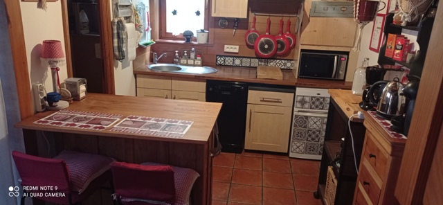 Au rez-de-chaussée, vous disposez d'un cabinet de toilettes et d'une cuisine équipée d'un lave-vaisselle, d'un micro-ondes et de divers petits électroménagers, vous permettant d'être parfaitement autonomes.